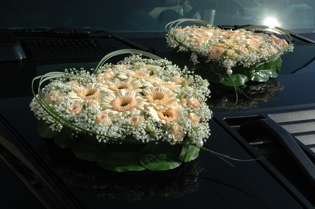 Неповторимым будет выглядеть украшение свадебных машин композициями из живых цветов.