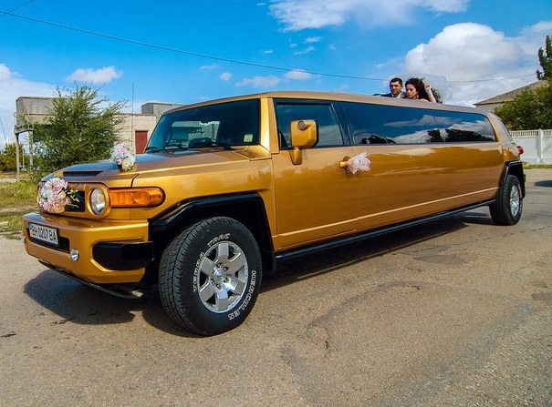 На фотографиях богатый золотой цвет лимузина будет переливаться на солнце, что сделает Ваши фотографии просто необыкновенными. И конечно же, сколько внимания вы получите, когда обычные городские зеваки будут заглядываться на вас, ведь «Золотой» лимузин только один во всем Крыму. А "золотой" Toyota FJ-Cruiser, пожалуй, один всем мире! Абсолютно уникальный, эксклюзивный автомобиль! Кроме обычных вещей, таких как: бар, различные подсветки, люк, кондиционер, кожаные диваны, "золотой" лимузин оборудован еще шикарной большой дверью. Она необычно поднимается вверх, что поможет Вам эффектно появится перед ожидающими вас гостями!
